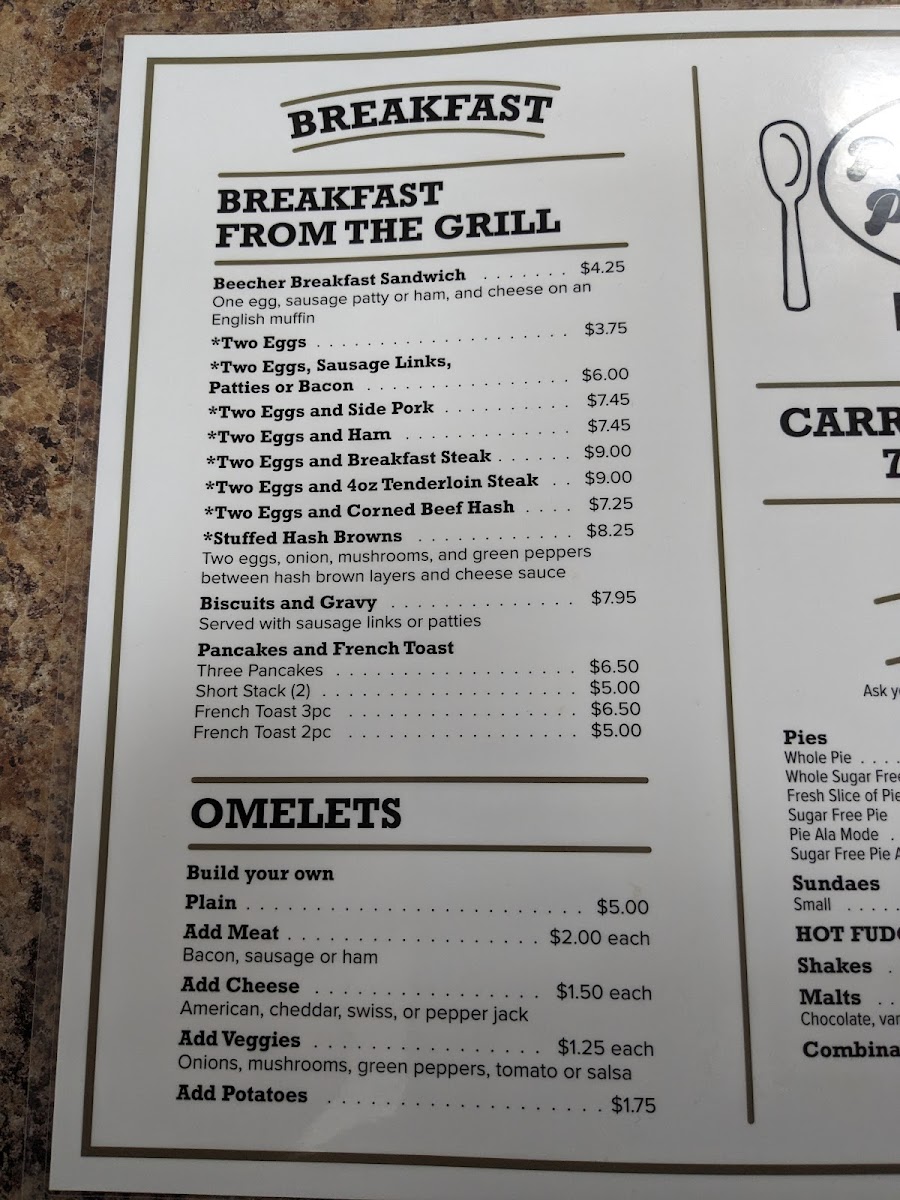 Alongside main dishes, the menu includes comforting sides like mashed potatoes, American fries, and potato pancakes that round out each plate. Soups and salads provide lighter options without stepping away from that classic American diner feel. For those looking to finish on a sweet note, homemade pies and hot chocolate offer a quietly satisfying end to any meal.