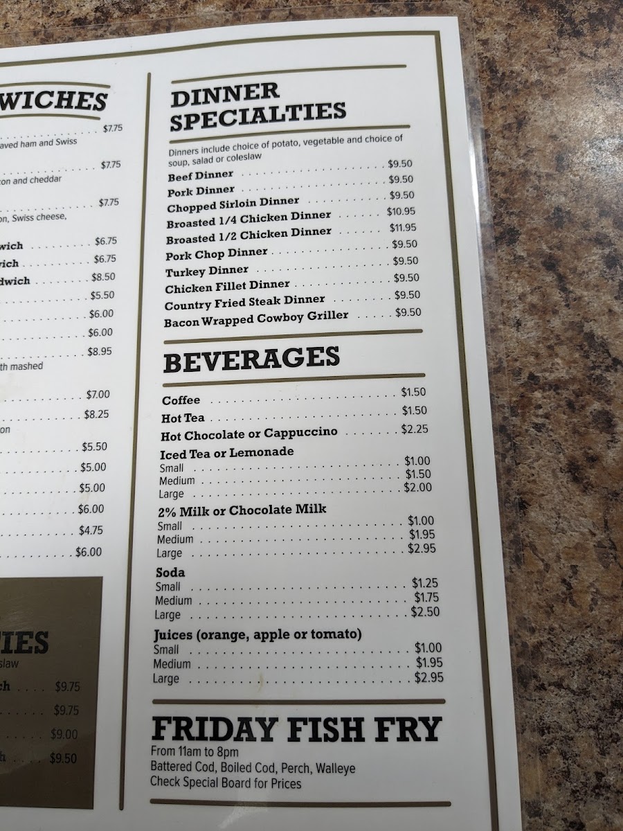 Guests can enjoy breakfast favorites such as blueberry pancakes, flapjacks, and eggs with bacon and toast, making mornings feel familiar and satisfying. The lunch and dinner selections highlight dishes like country fried steak, broasted chicken, and the ever-popular double bacon cheeseburger with fries. These meals complement the down-to-earth atmosphere where locals and travelers alike come to enjoy simple, well-prepared food.